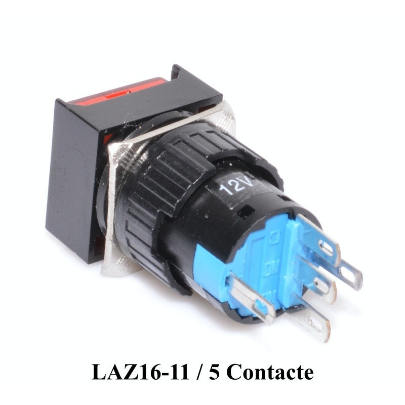 Buton intrerupator patrat rosu 16mm 12V