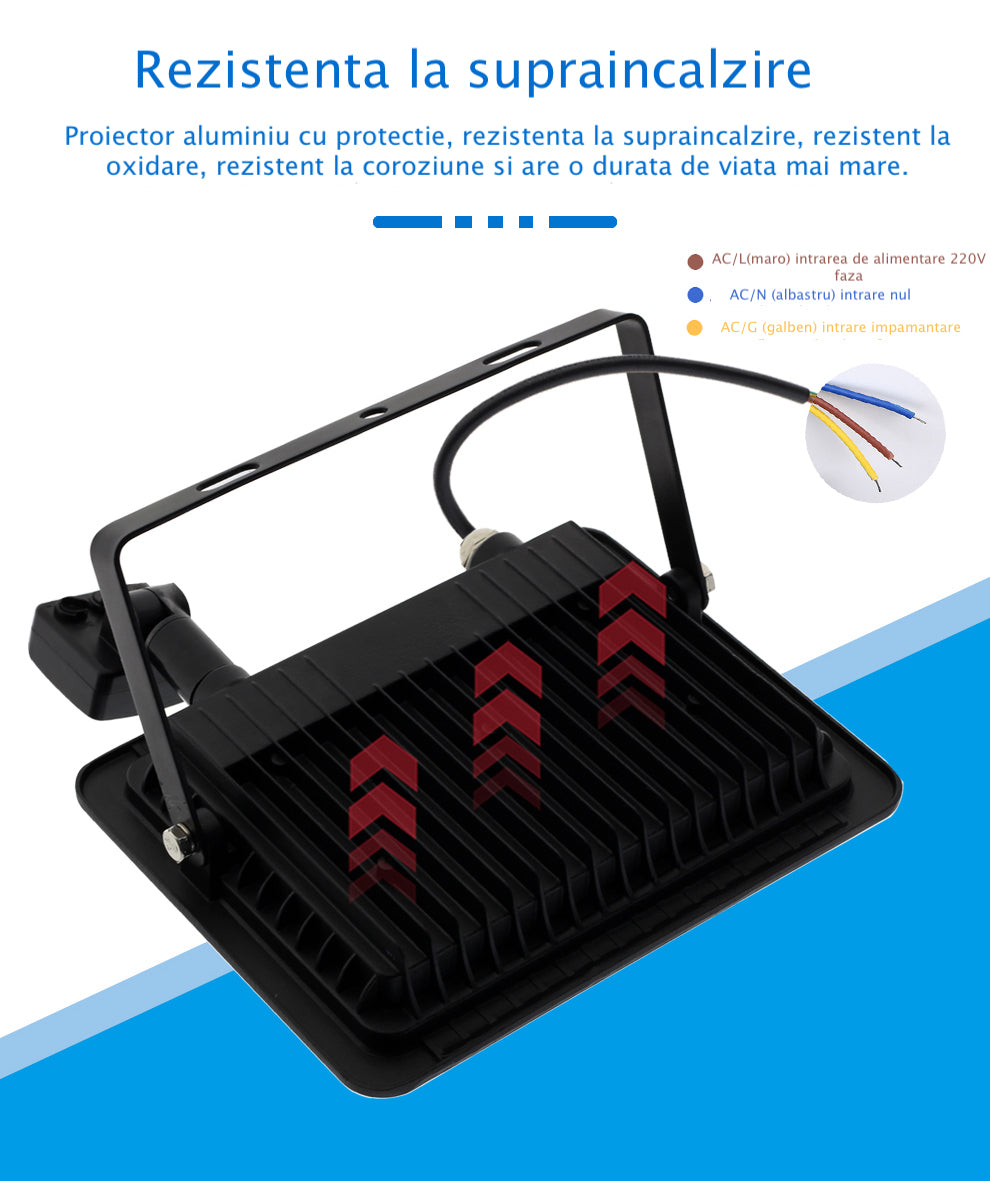 Proiector slim led SMD 50W senzor IP66